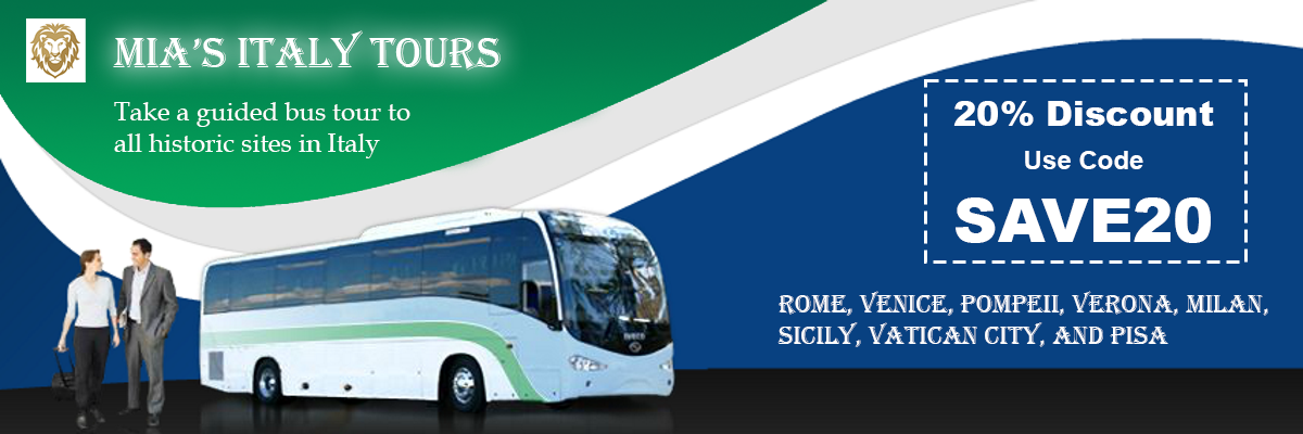 Guided bus tours for Rome, Venice, Pompeii, Verona, Milan, Sicily, Vatican City, and Pisa.